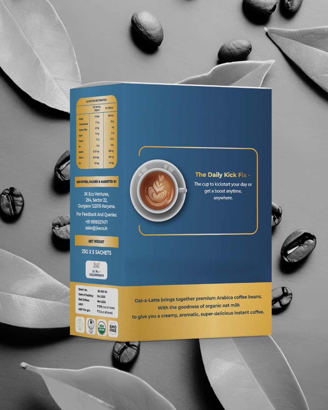 Oat-á-Latte brings together premium Arabica coffee beans with the goodness of organic oat powder to give you a creamy, aromatic, super-delicious instant coffee.